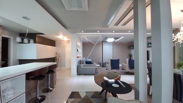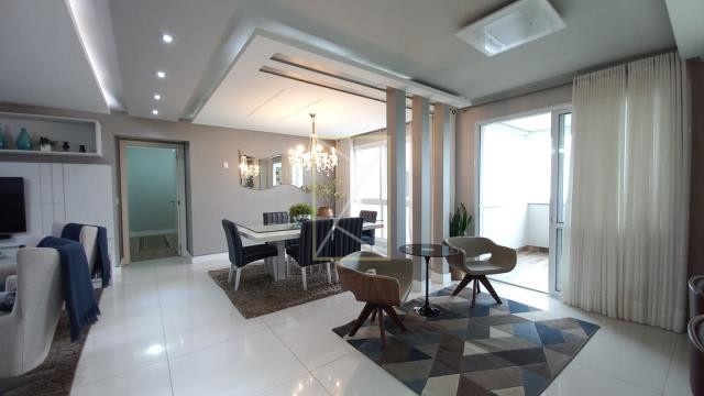 Com 03 suítes, sendo 01 com closet, lavabo, área de serviço, sacada fechada, churrasqueira/bifeteira, ar condicionado e 02 vagas de garagem.