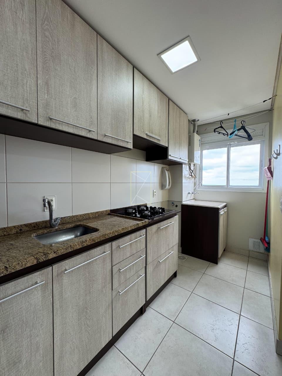 Conta com, 1 dormitório, 1 sala, 1 cozinha, 1 banheiro, 1 área de serviço, piso laminado e cerâmico, 1 vaga de garagem
