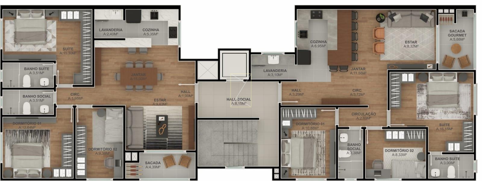 São 99 m² privativos.