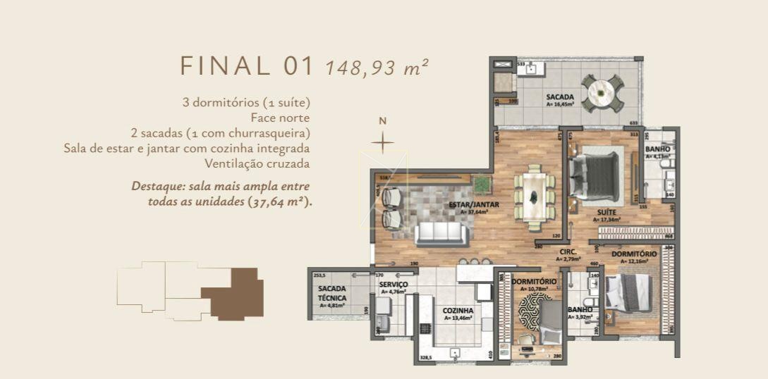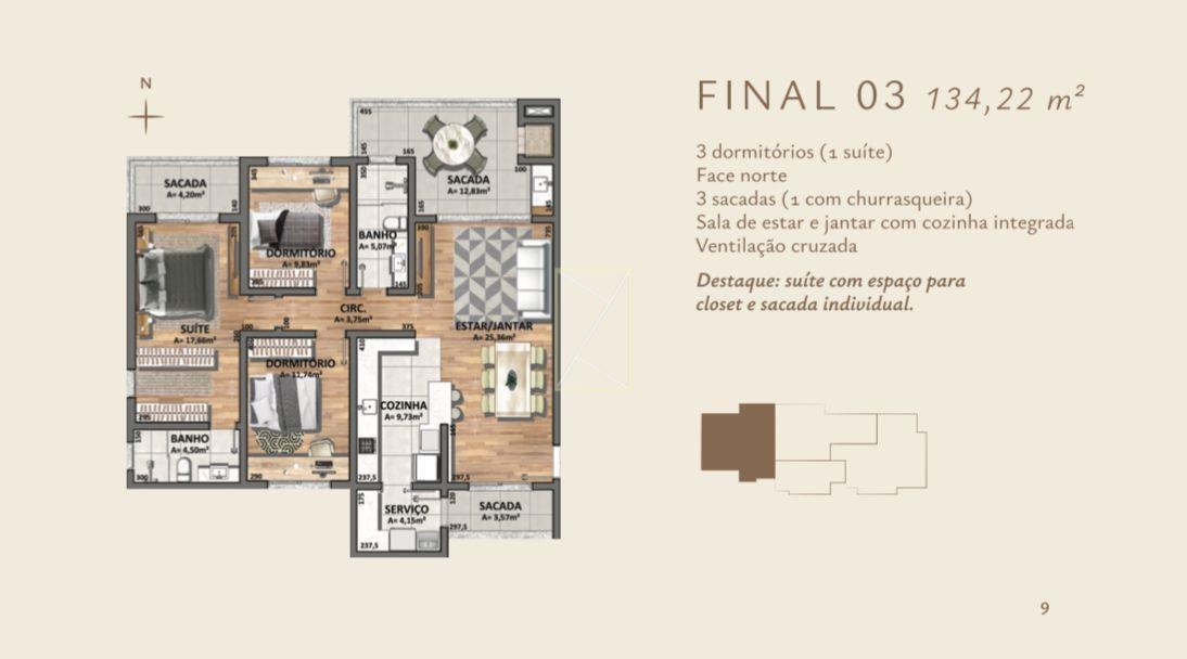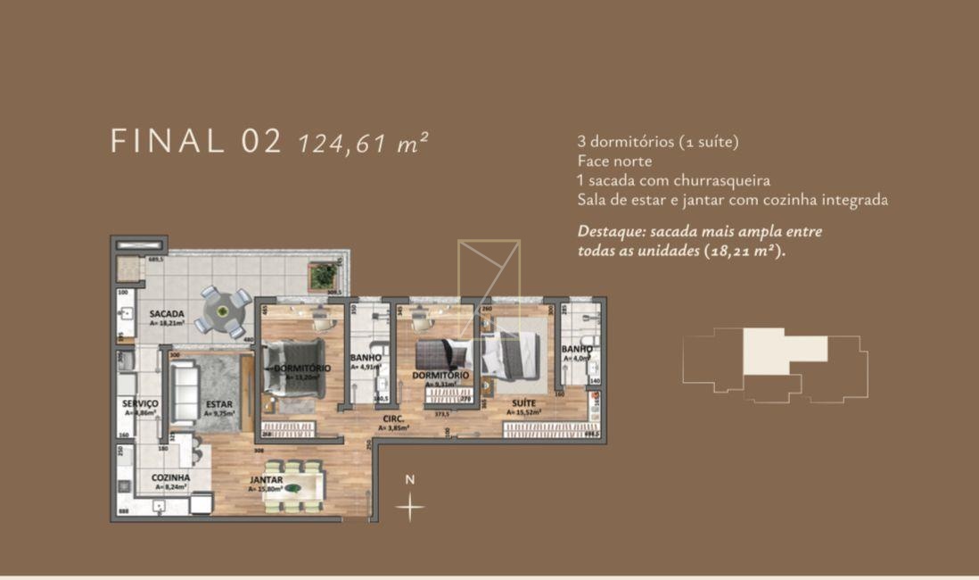 Venda: R$ 835.000,00 124,61 m²- 3 Dormitórios