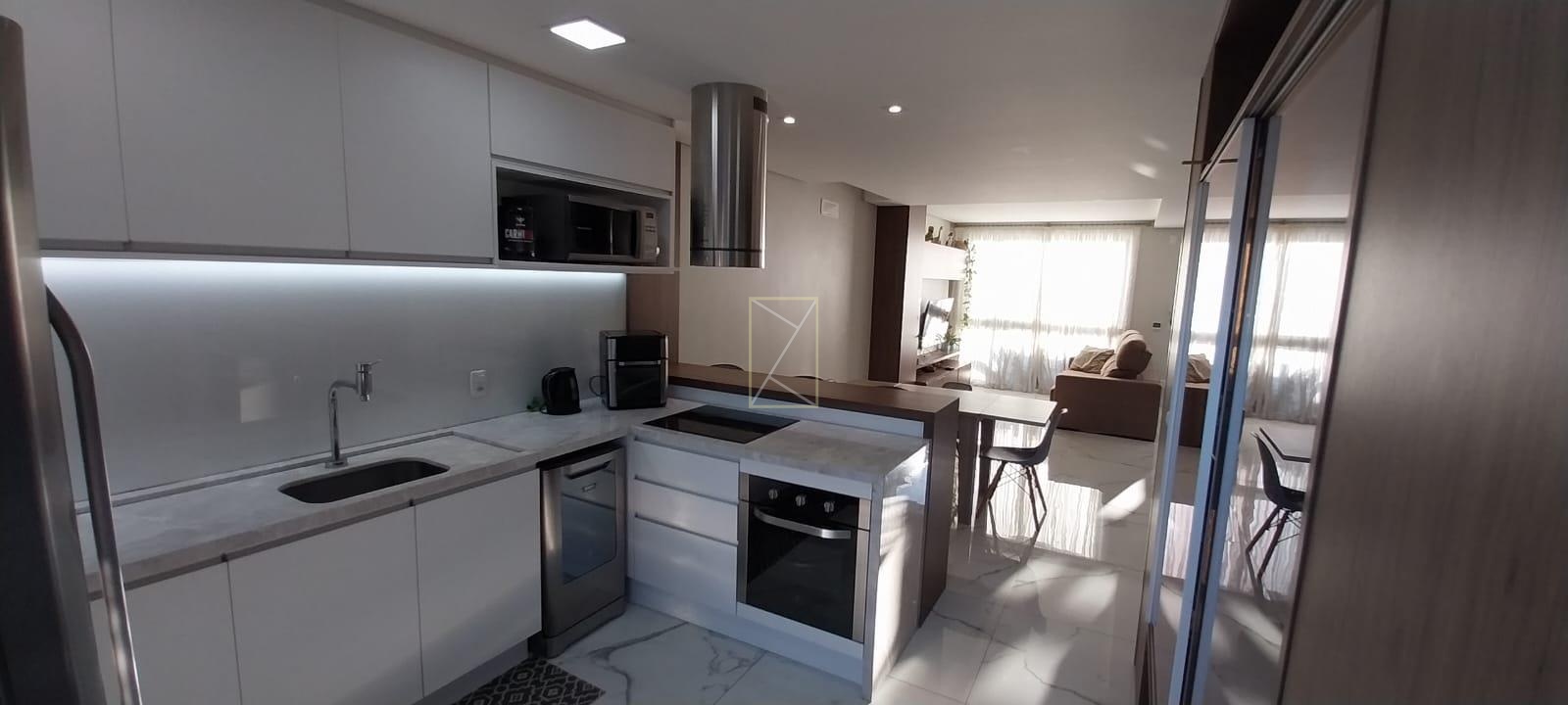 Sala, cozinha e área de serviço conjugados;