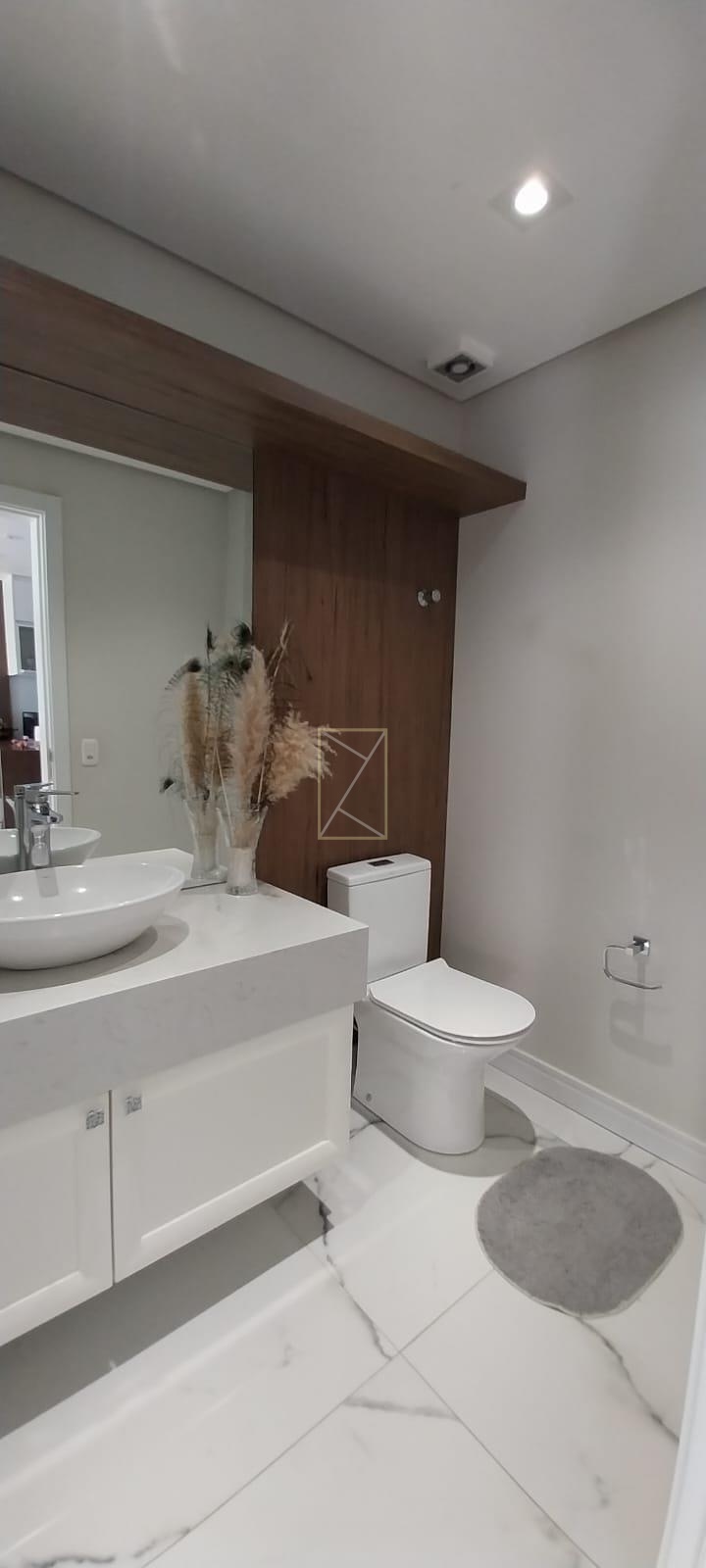 Piso inferior de porcelanato polido;