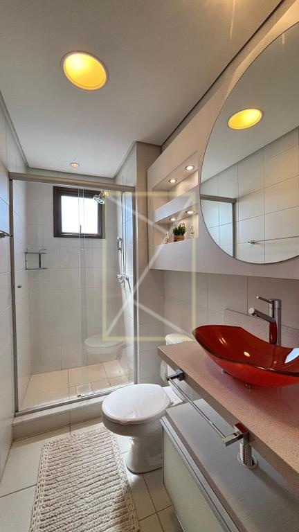 Imóvel mobiliado com 02 dormitórios, sendo um suíte, cozinha integrada com churrasqueira, sala dois ambientes, área de serviço independente, sacada fechada, banheiro social, vidros duplos, ar condicionado e 02 vagas individuais de garagem.